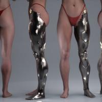 Cyber Augments Legs HD for Genesis 9 are human-machine hybrid legs with detailed plating and six finish options, including a damaged finish. Use it on either leg or both, and with or without lights.