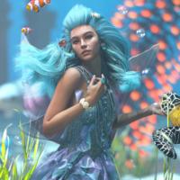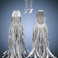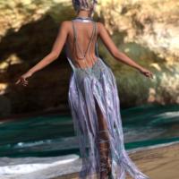 dForce Enchanting Ethereal Outfit for Genesis 9 is a jewel-encrusted dress with flowing translucent materials similar to the look of a jellyfish. It comes with a set of heels with straps climbing the leg, pearl necklaces, and brooches.