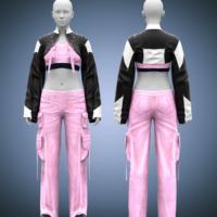 dForce Jellyfish Outfit for Genesis 9 is a pink-and-black K-pop styled streetwear set with cropped layers and cargo details for fashion-forward renders.