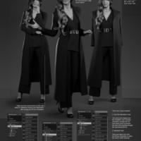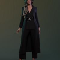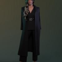 The Silhouette Suit includes a fitted jacket, tailored pants, and two coat styles: a standard coat and an over-the-shoulder draped coat for a high-fashion, cinematic look. The outfit is fully conforming, with optional dForce simulation for the coat and pants to add natural movement and realism.