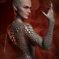 Give your Genesis 9 figures a mythical reptilian look with Dragonscale HD for Genesis 9. HD detailed scales across the body and head, as both flared and flat, pointed ears, individually scaled hands and feet with talons to add that extra animalistic look. With a beautiful glissing platinum finish for the scales, it also includes an optional skin-tinting material if you wish to better match the skin tone to the scales.