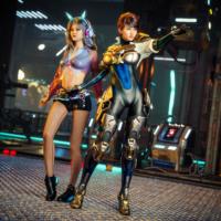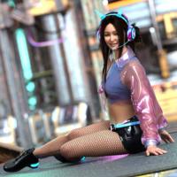 - A cyber anime k-pop styled outfit with a bonus cute cyberkitty companion