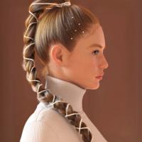 - A braided hairstyle wrapped with diamonds