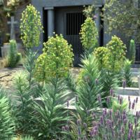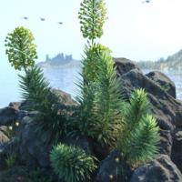 The Mediterranean Spurge (Euphorbia characias) lights up a scene with its lime green spotted purple bracts and grey blue foliage! - whether its a rocky outcrop overlooking the blue waters of the Aegean sea, a garden, or something to take over an old yard or piece of wast lend this bundle of ten high resolution flowering and foliage plants, give you the opportunity to add some structure and subtle splashes of color to your scenes.
