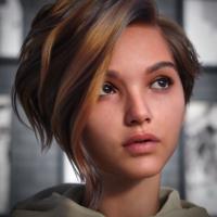 Nadine is ready to dive into action with a slender, athletic build and light-tan, highly detailed skin. Her face has a clear but soft jawline, high cheekbones, and a slim, straight nasal bridge. She's the perfect figure to add to your collection, whether you need a beach model, an athlete, or the girl next door; she's ready to shine.