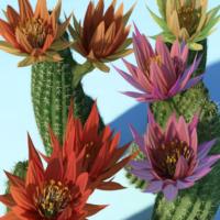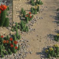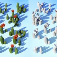 This big bundle of lovely little plants comes with ten different growth options, five flower color Material options, two spine color options and two subtly different body color options. It also comes with some low resolution models which will enable you to scatter them in thick carpets over a ground plane, or great for use in the background where fine detail is not needed. As always a little goes a long way, and one version of a plant can be instanced or duplicated with slight variations of scale and y rotation settings to make it look like lots of different and unique versions. These plants are intended for medium to background positioning in your scenes!