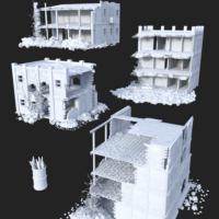 Post Apocalyptic Buildings 1 is a collection of 4 dilapidated concrete buildings, a fire in a barrel and a ground plane to put them on, for all your post apocalyptic scenes.